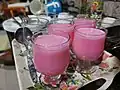 India A dessert made with milk, cheese solids and flour. It is deep-fried and soaked in sugar water flavored with green cardamom, saffron and roses.
