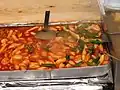 Tteokbokki South Korea These are small, cylindrical rice cakes coated in a spicy sauce.