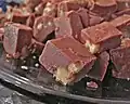 Fudge United States Typically sweet and rich, it's prepared by mixing sugar, butter, and milk, heating it to the soft-ball stage at 240 °F (116 °C) and then beating the mixture while it cools so that it acquires a smooth, creamy consistency. Many variations exist with other flavorings added, such as chocolate.