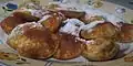 Spain A deep-fried dessert made with leavened wheat dough and shortening.