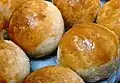 Mushi-pan (蒸しパン) Japan Muffin-like cakes made with flour, baking powder, eggs, milk, sugar, oil and then steamed.[15]