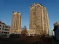 Kyiv | 2009 | 110.2 | 32 | Two buildings were opened in 2009, third one was topped out in 2012 and still remains unfinished. |