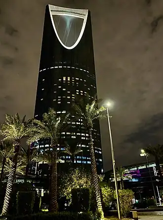 - Kingdom Centre is a tall skyscraper located in Olaya district. It is one of the globally recognized iconic landmarks on Riyadh.