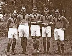 The efforts were successful – the Lithuanians became the champions of Europe for the first time, defeating all their opponents and with Talzūnas being picked as the tournament's most valuable player. Following the final victory over Italy, the famous Lithuanian tenor Kipras Petrauskas even interrupted his performance at the State Theatre to joyfully announce the triumph of the national basketball team. The crowd then rose to their feet and together sang the Lithuanian anthem.[17] The team returned to a warm reception, with thousands gathering at a train station in a way Kriaučiūnas compared to "like we, here in America, greet the president."[18] Basketball regained its ground immediately, and had its popularity rise abruptly, especially among students. Gymnasium teams from almost all counties competed in student games, teams were assembled in firms and basketball courts appeared all around the country. According to future player Stepas Butautas, "In every yard hoops are being made from barrels. Children, teenagers are throwing balls into them, others – even a sock crammed with clouts. Our Veršvai Primary School teacher K. Požemecka built two poles, made hoops from a willow and said: 'We will play basketball'."[19] Future team coach Vladas Garastas added that "as kids we started using a barrel to make a hoop. We didn't have a ball, we stuffed in grass or whatever we could find".[20]