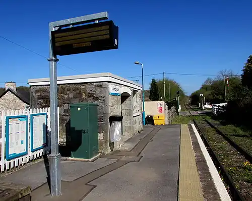 Llandybie railway station serves the village of Llandybie near Ammanford, Carmarthenshire. The railway station is located below street level just off Kings Road. This is a convenient stop for Glynhir Estate and Glynhir Falls. Two miles (3 km) from the station is the Llandybie 18-hole golf course.