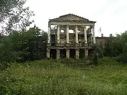 The eastern part of Lomonosovsky District is and always was a part of the greater Saint Petersburg area, therefore it was attractive for aristocracy as a location to build their estates. The district contains over a hundred cultural heritage monuments of federal and local.[18] The federally designated monuments include the medieval Koporye Fortress, the Gostilitsy Estate in the village of Gostilitsy, built in the 18th century and redesigned in the 1840s by Andrei Stackenschneider, the complex of the postal station in the village of Kipen, built in the 1800s, and the Ropsha Estate in the settlement of Ropsha, built in the 18th century under the general supervision of Francesco Bartolomeo Rastrelli, and in the 1790s was the imperial estate owned by Tsar Paul I. Ensembles of Gostilitsy and Ropsha, as well as four roads stretching out of Saint Petersburg — Tallinskoye Highway (A180), Peterhofskoe Highway, Ropshinskoe Highway, and Gostilitskoe Highway — are a part of World Heritage site Historic Centre of Saint Petersburg and Related Groups of Monuments.[19] As of 2012, both Ropsha and Gostilitsy were deserted and at the verge of collapse.[20]