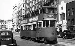 The very last tram was car no. 1951, running on the five-mile Route 40 from Woolwich to New Cross via Charlton and Greenwich. From New Cross to Greenwich it was driven by Driver Albert Fuller. At Greenwich, the Mayor of Deptford, Mr F. J. Morris, took over the controls. John Cliff, a former tram driver from Leeds who was now deputy chairman of London Transport, drove the car for the final leg of the route into the New Cross depot. The journey was delayed by crowds of cheering spectators (20,000 of them, according to one report) who surrounded it along its route and followed it to the depot.[12][13][14]