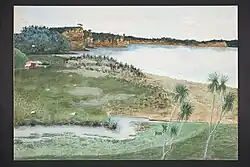 From the conquest until the early 19th century, Ngāti Kahu and Ngāti Poataniwha, two hapū who descend from Kahu, lived at Long Bay.[12][13] A defensive headland pā was constructed at Te Piripiri (Pipiri Point),[13][5] and a kāinga was settled at Te Awaruaika (the shores of Awaruaika, or Vaughans' Stream).[26][13] By the 18th century, the Marutūāhu iwi Ngāti Paoa had expanded their influence to include the islands of the Hauraki Gulf and the North Shore.[31] After periods of conflict, peace had been reached by the 1790s.[32] The earliest contact with Europeans began in the late 18th century, which caused many Tāmaki Māori to die of rewharewha, respiratory diseases.[33] During the early 1820s, most Māori of the North Shore fled for the Waikato or Northland due to the threat of war parties during the Musket Wars. Most people had returned by the 1830s,[12][8] and remained at Te Oneroa until the 1850s.[9]