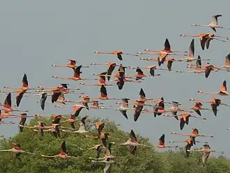 Los Flamencos Sanctuary (Spanish: Santuario de Fauna y Flora Los Flamencos) has been a designated wildlife sanctuary since 1977. It is located in the Guajira Peninsula of Colombia's Caribbean Region. Its main attraction is the American flamingoes, and their nests that can reach 60 cm (2.0 ft) high.