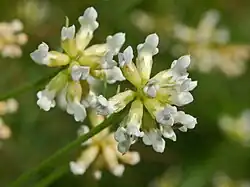 Lotus dorycnium, previously known by the synonym Dorycnium pentaphyllum,[1] common names: prostrate Canary clover and badassi,[2] is a herbaceous perennial plant belonging to the genus Lotus of the family Fabaceae.[1]