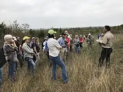 Louis René Barrera (on the right) giving a tour at the Indiangrass Wildlife Sanctuary