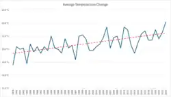 The effect of climate change is also noticeable in the sanctuary. Average yearly temperature data recorded from 1979 until 2023 shows that the temperature in the areas in which the sanctuary is located has experiencing a steady increase in temperatures. The hottest year recorded was 2023, with an average temperature of 22.1 °C, while the coldest was 1979 with 18.8 °C. Over four decades, the average annual temperature has increased by 3.3°C.[22]