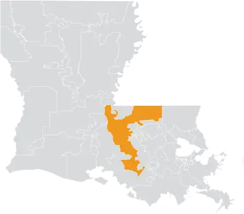 The district overlaps with Louisiana's 2nd, 3rd, 5th, and 6th congressional districts, and with the 18th, 29th, 50th, 51st, 58th, 60th, 62nd, 64th, and 72nd districts of the Louisiana House of Representatives.[4]