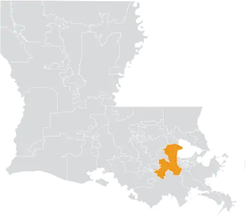 The district overlaps with Louisiana's 1st, 2nd, and 6th congressional districts, and with the 54th, 55th, 56th, 57th, and 92nd districts of the Louisiana House of Representatives.[4]
