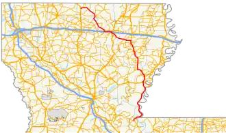 Louisiana Highway 15 (LA 15) is a state highway located in central and northern Louisiana. It runs 194.10 miles (312.37 km) in a north–south direction from the junction of LA 1 and LA 970 in Lettsworth to the concurrent U.S. Highways 63 and 167 in Lillie. The middle portion of the route, extending 56 miles (90 km) from Ferriday to just north of Mangham, is co-signed with US 425 and is a major four-lane highway through the area.