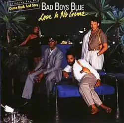 Love Is No Crime is the third studio album by German band Bad Boys Blue. It was released on 12 October 1987 by Coconut Records. The album includes one international hit, "Come Back and Stay".[1] Two singles were released from the record: "Come Back and Stay" and "Gimme Gimme Your Lovin' (Little Lady)".