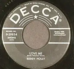 1. ^ "Buddy Holly - Love Me". 45cat.com. Retrieved 28 April 2021.