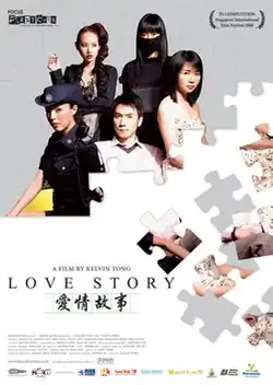 Love Story (Chinese: 爱情故事) is a 2006 Hong Kong and Singaporean romantic drama film directed by Kelvin Tong. The film follows a romance novelist and his four different muses, and stars Allen Lin, Erica Lee, Evelyn Tan, Tracy Tan and Amanda Ling.[2][3][4] Funded by Andy Lau's production company Focus Films as part of its Focus: First Cuts projects which was set up to encourage the region's promising directors, the film won Tong the Best Director award at the 2006 Singapore International Film Festival.[5][6][7]
