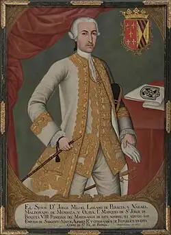 The Lozano de Peralta family was one of the most aristocratic families of Colombia during the colonial age, well known for being the richest family of the new kingdom of Granada. ln 1771, they acquired the title of Marquises, the only noble title of Colombia. The marquisate of Saint George of Bogotá was a noble title given to Jorge Miguel Lozano de Peralta by the King Carlos III.[1][2]