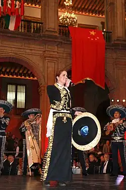 In the same year she received five awards for Best Singer for her work Con mi Sentimiento. In 1992, she was selected as Queen of Viña del Mar Festival in the Viña del Mar International Song Festival.[14] She returned to the ranchera genre with the album Lucero de México, once again produced by Rubén Fuentes. The promotion of the album was big, since her first ranchero album had not been well promoted. Sales achieved the gold status in Central America and Chile. In Mexico, they reached the double platinum, becoming one of the best selling albums of ranchera music.[8]