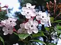 Luculia is a genus of flowering plants in the family Rubiaceae. It was described by Robert Sweet in 1826 and is currently found from the Himalayas to southern China.[1] The species are shrubs or small trees, generally found on upland scrub and woodland or forest margins. They have large leaves from 20 to 35 cm with prominent veins carried in opposite pairs. The inflorescence is a terminal umbel or corymb of tubular/open ended white, pink or creamy flowers with 5 spreading petals. It may be from 10 to 20 cm, depending on the species.[2]