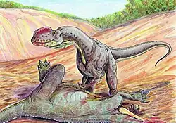 The Lufeng Formation (formerly Lower Lufeng Series) is a Lower Jurassic sedimentary rock formation found in Yunnan, China. It has two units: the lower Dull Purplish Beds/Shawan Member are of Hettangian age, and Dark Red Beds/Zhangjia'ao Member are of Sinemurian age.[1] It is known for its fossils of early dinosaurs. The Dull Purplish Beds have yielded the possible therizinosaur Eshanosaurus, the possible theropod Lukousaurus, and the "prosauropods" "Gyposaurus" sinensis, Lufengosaurus, Jingshanosaurus, and Yunnanosaurus. Dinosaurs discovered in the Dark Red Beds include the theropod Sinosaurus triassicus, the "prosauropods" "Gyposaurus", Lufengosaurus, and Yunnanosaurus, indeterminate remains of sauropods, and the early armored dinosaurs Bienosaurus and Tatisaurus.[2]