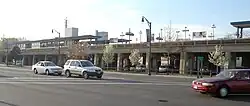 The third and current, elevated station opened on October 18, 1938.[6][7] It is located approximately 1,113 feet (339 m) west of the location of the earlier two versions of the station.[6][7]