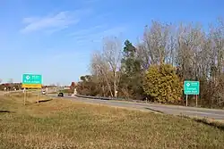 Just after entering Westland, an overpass carries M-153 over a railroad track, flanked on either side by an at-grade frontage road.[4] Ford Road continues east, forming a section of the Garden City boundary near Venoy Road. The trunkline crosses into Dearborn Heights at Inkster Road. It forms the boundary between Dearborn and Dearborn Heights between Gulley and Evergreen roads, crossing US 24 (Telegraph Road) in between. East of Telegraph Road, M-153 is built to expressway standards complete with interchanges at Edward N. Hines Drive, Evergreen Road, M-39 (Southfield Freeway) and Greenfield Road. The highway crosses the River Rouge north of the Dearborn Country Club west of Evergreen Road. Ford Road ends at Wyoming and McGraw avenues. M-153 turns south along Wyoming Avenue to cross I-94 at exit 210. This interchange is also the location where I-94 and US 12 (Michigan Avenue) cross, marking the eastern end of M-153 at Michigan Avenue.[3][4]