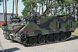 The Australian Army refers to its M113A1s as "buckets", "bush taxis"[21] and modified M113A1s fitted with 76 mm turrets as "beasts". The German Army has various nicknames, depending on location and branch of service, including "elephant shoe",[22] "Tank Wedge"[23] and "bathtub". In Spain's Army it is known as "TOA", the acronym of Transporte Oruga Acorazado, which is Spanish for Armored Tracked Carrier. In the Ukrainian Army it is called "Emka" (M).