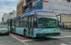 Studies and community outreach for Select Bus Service upgrades were conducted through 2011, and plans to implement the M60 SBS were announced on October 11, 2012.[34] At the time, the M60 was the heaviest used of the four 125th Street crosstown buses. The plan would turn the M60 local into a limited-stop service along 125th Street, with the number of stops along the corridor reduced from eleven to six. It would add dedicated MTA bus lanes and other improvements to speed travel times, and make the fleet entirely articulated and fully equipped with luggage racks.[7][8] Plans for the SBS route were scrapped in July 2013 after opposition from the Harlem community and state senator Bill Perkins, over the potential loss of parking space on 125th Street, and due to a lack of collaboration by the DOT with the community.[35][36][37]