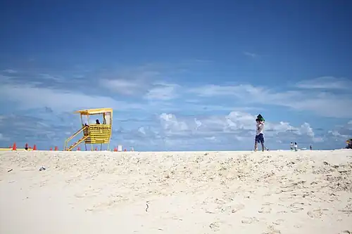 Managaha is one of the most popular tourist attractions on Saipan, known for its views of clear water, beaches, and is accessed by a short ferry ride from Saipan.[2] In the late 2010s it was estimated 70% of the tourists to Saipan also visit Managaha.[3] The small island is ringed by beach circling forested area where there are the facilities.[4]