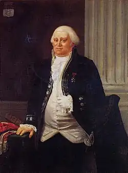 Barbe-Nicole Ponsardin, born 16 December 1777 in Reims, was the daughter of a wealthy father, Ponce Jean Nicolas Philippe Ponsardin (from 1813, Baron Ponsardin), a textile manufacturer and politician.[1] Her mother was Jeanne Josephe Marie-Clémentine Letertre-Huart. Her childhood was influenced by her father,[2] who was involved in both business and politics.[3][4] Formerly a royalist, he switched political positions to turn against the monarchy. Thanks to this move, Barbe-Nicole's family escaped the Revolution unscathed.[2] Napoleon and Josephine had both stayed at L'Hôtel Ponsardin, her family's home (not a hôtel in the modern sense). Her father was made mayor of Reims by Napoleon's decree.[5]