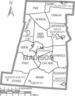 1. ^ "Madison County Online Services". Madison County, Ohio. Archived from the original on March 7, 2011. Retrieved August 26, 2010.
