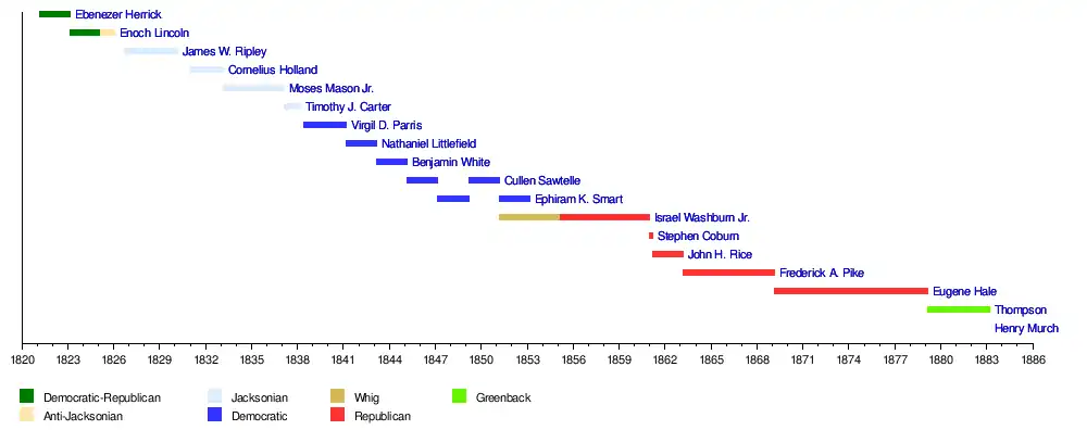 Thompson Henry MurchThompson Henry MurchEugene HaleFrederick A. PikeJohn H. RiceStephen CoburnIsrael Washburn Jr.Cullen SawtelleBenjamin White (Maine politician)Nathaniel LittlefieldVirgil D. ParrisTimothy J. CarterMoses Mason Jr.Cornelius HollandJames W. RipleyEbenezer Herrick