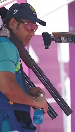 Mairaj Ahmed Khan (born 2 November 1975, in Khurja) is an Indian skeet shooter and two-time Olympian.[1][2] Khan was the first Indian skeet shooter to qualify for the Olympics when he qualified for the Rio Olympics in 2015;[3] he also competed in the Tokyo Olympics in 2021.[4] He has won gold at the ISSF World Shooting Championships,[5][6][7] the Commonwealth Shooting Championships,[6][2] and the Asian Shooting Championships.[2] In 2021, Sportstar reported that Khan was ranked #24 in the world in skeet.[8]