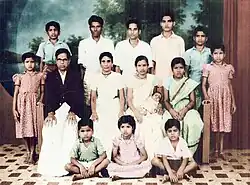 A photo of a Malayalee family of three generations, taken in 1950 in Seremban, Negeri Sembilan