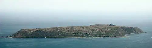 Mana Island is a 3 km (1.9 mi) long, 2.17 km2 (0.84 sq mi) table, with cliffs along much of its coast and a plateau occupying much of the interior. It lies 3 km (1.9 mi) off the North Island coast in the Tasman Sea, west of the city of Porirua and south of the entrance to Porirua Harbour. In 2009, it was selected by the Global Restoration Network as one of New Zealand's top 25 sites for ecological restoration. Although a wildlife sanctuary, and thus with no permanent human population, the island is officially defined as a suburb of Porirua City.