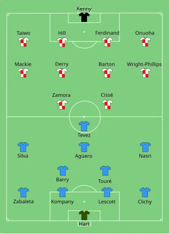Adding to the atmosphere of the match for City was the fact that lining up for their opponents were several of their former players in Nedum Onuoha, Shaun Wright-Phillips and Joey Barton. QPR were also managed by Mark Hughes, who had been sacked by City two years previously.[25]