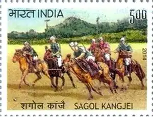 A match of Sagol Kangjei (Meitei for 'Polo') depicted in a stamp of the Republic of India