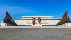 The Mansu Hill Grand Monument (Korean: 만수대대기념비; Hanja: 萬壽臺大紀念碑) is a complex of monuments in Pyongyang, North Korea. There are 229 figures in all, commemorating the history of the revolutionary struggle of the Korean people, and especially their leaders. The central part of the monument consists of two 22-meter-tall (72 ft) bronze statues[1][2] of Kim Il Sung and Kim Jong Il.