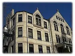 Construction of Old Main was started in 1873 and completed in four phases over the course of 21 years. Originally home to Sacred Heart College, the building was purchased from the Brothers of Holy Cross by B. Myron Cedarholm in 1968. It now houses three floors of classrooms, administrative offices, Maranatha Baptist Academy, the campus post office, and two fine arts performance halls.[11] Old Main is also home to the campus coffeehouse Old Main Cafe which was established in 2007.