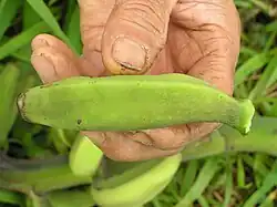 Poor fruit development (lumpy fruits) for ladyfinger banana in Hawaii associated with Marasmiellus stem rot of banana, caused by M. inoderma