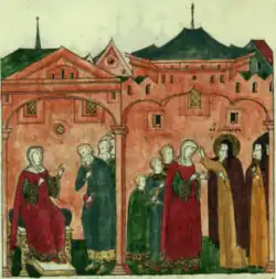 Marfa Boretskaya (Russian: Марфа Борецкая), also known as Martha the Mayoress (Russian: Марфа Посадница, romanizedMarfa Posadnitsa), was a Russian businesswoman and noblewoman. She was the wife of Isaak Boretsky, the posadnik of Novgorod from 1438 to 1439 and again from 1453.[1] According to legend and historical tradition, she led the republic's struggle against Moscow between her husband's death and the city's final annexation by Grand Prince Ivan III in 1478.[2][1]