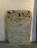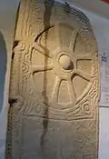A stone slab showing a six-spoked 'cart-wheel' on the front and a linear 'ring cross' on the reverse. Although most linear crosses are dated rather earlier than the sculptured crosses, these are most likely to have been made at the same time.[1]