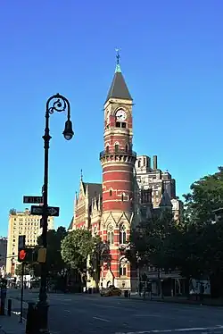 10. ^ a b c Gray, Christopher (1994-04-03). "Streetscapes/The Jefferson Market Courthouse; A Stopped Clock Sired the Preservation Movement". The New York Times. ISSN 0362-4331. Retrieved 2017-10-18.