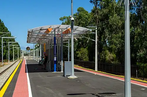 Marion railway station is located on the Seaford line.[3] Situated in the south-western Adelaide suburb of Marion, it is 11.4 kilometres from Adelaide station.