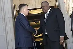 Błaszczak with U.S. Secretary of Defense Lloyd Austin at the Pentagon in Washington, D.C., 20 April 2022