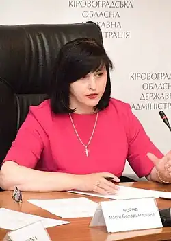 Mariya Volodymyrivna Chorna (Ukrainian: Марія Володимирівна Чорна; born on 26 August 1974), is a Ukrainian politician and statesman who had served as the governor of Kirovohrad Oblast from 2021 to 2022.[1]