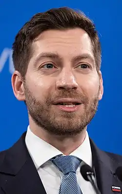 In April 2021, the 14th government of the Republic of Slovenia appointed him head of the Strategic Council for Digitization, the government's consultative body. On 17 July 2021 the government appointed him to a newly created position - he became a minister without portfolio responsible for digital transformation.[7][8][9] It was approved in the National Assembly with 45 votes, 44 against.[7][8][9] One of the more prominent decisions during his ministry was the introduction of digital vouchers worth 150 euros, which enabled pupils in the last triad of elementary schools, pupils and students to buy computer equipment. Vouchers were also given to citizens aged 55 or older who attended digital literacy training subsidized under the Digital Inclusion Promotion Act.[10] The vouchers came into effect on 15 June 2022.[11][12]