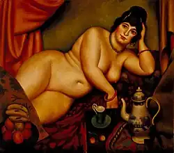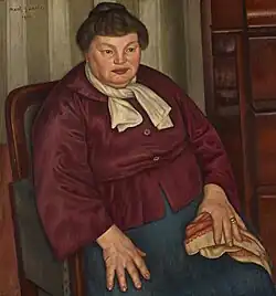 Gertler's patron was Lady Ottoline Morrell,[14] through whom he became acquainted with the Bloomsbury Group. She introduced him to Walter Sickert, the nominal leader of the Camden Town Group.[15] Gertler was soon enjoying success as a painter of society portraits, but his temperamental manner and devotion to advancing his work according to his own vision led to increasing personal frustration and the alienation of potential sitters and buyers. As a result, he struggled frequently with poverty.